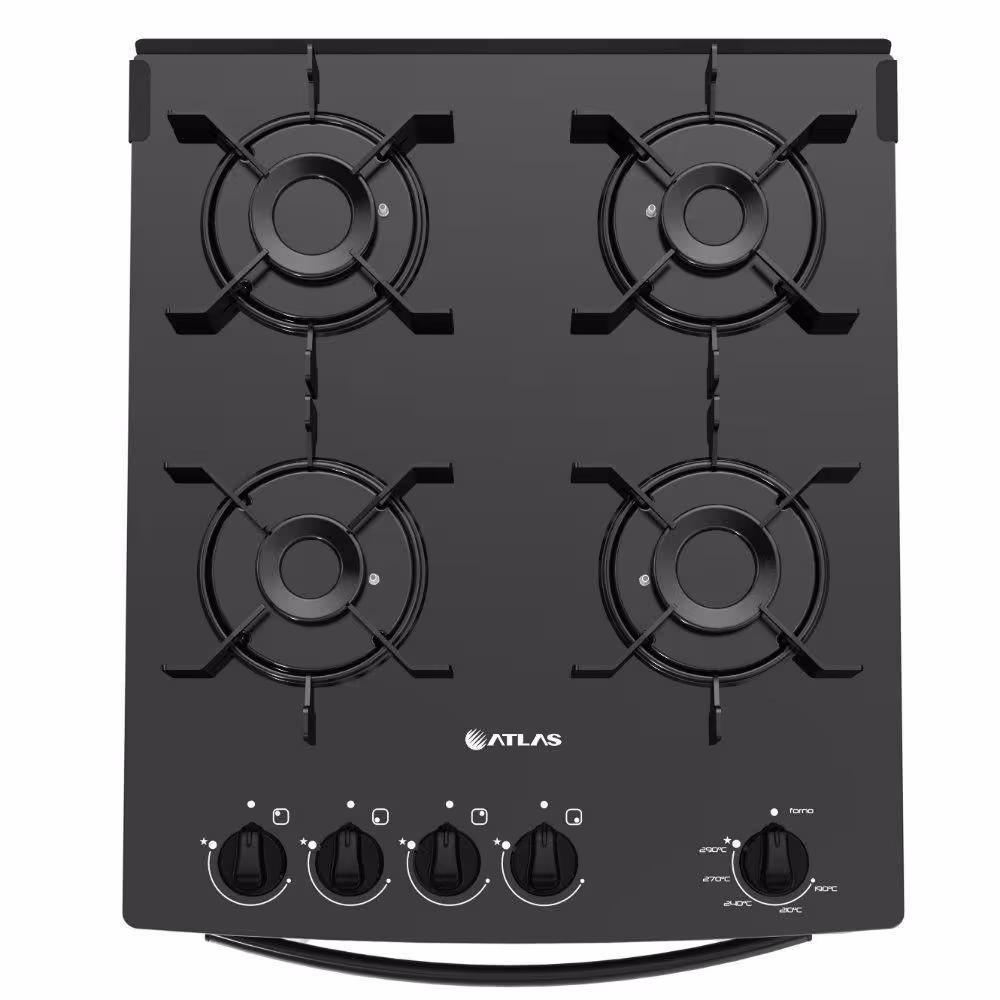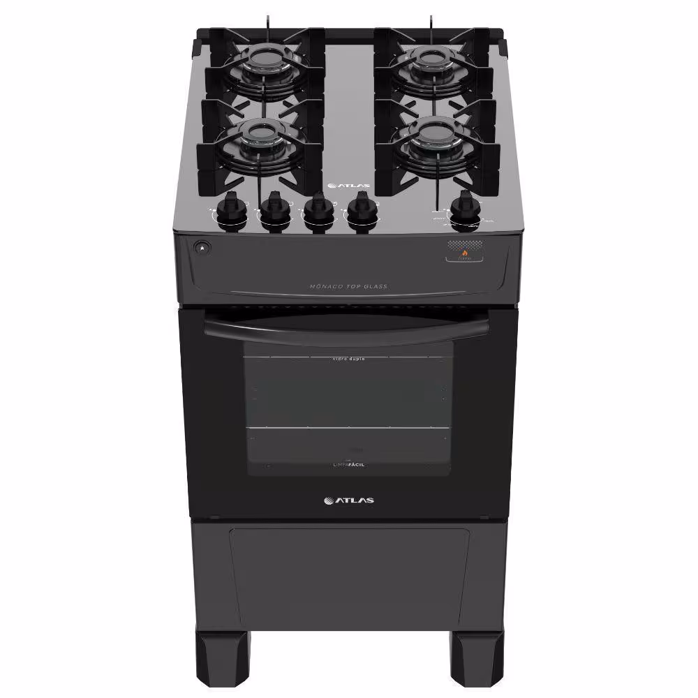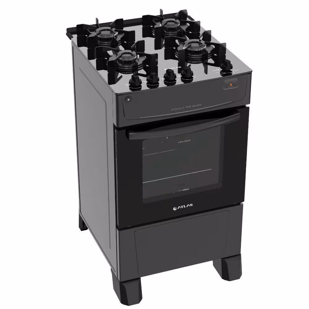 Fogão De Piso Atlas 4 Bocas Mônaco Top Glass Preto Bivolt - Fogão de Piso Atlas 4 Bocas Bivolt